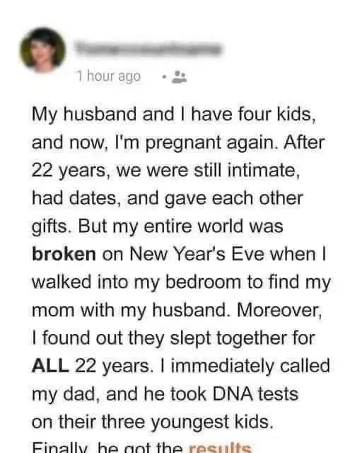 Her husband confessed that their af:fa:ir had been ongoing since he was 18 years old—nearly the entire duration of their marriage.