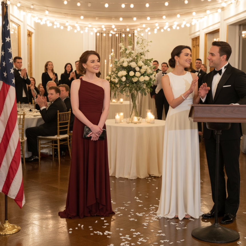 She took the glass and smiled at all the guests. “I want to thank all the special people who are here with me today,” she began. “To the friends who have become siblings, to the colleagues who have become family.”