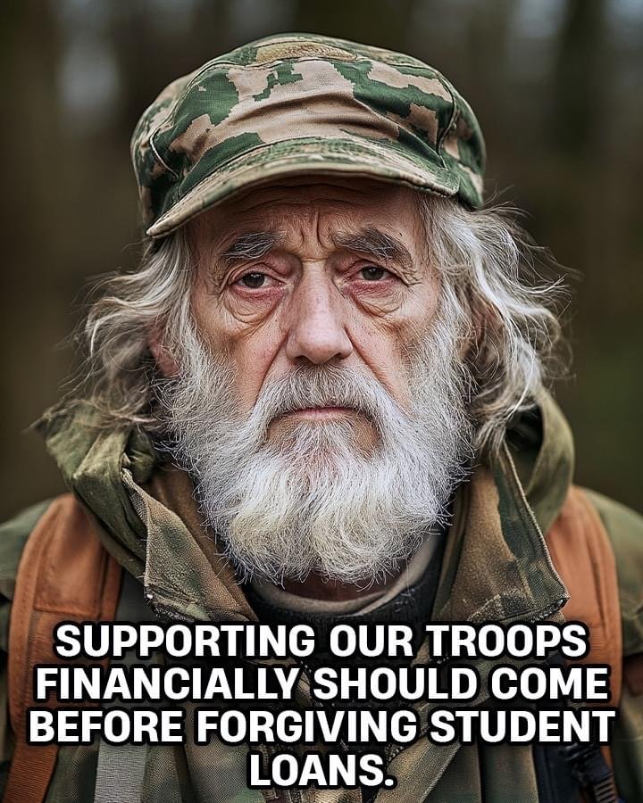 SUPPORTING OUR TROOPS FINANCIALLY SHOULD COME BEFORE FORGIVING STUDENT LOANS.