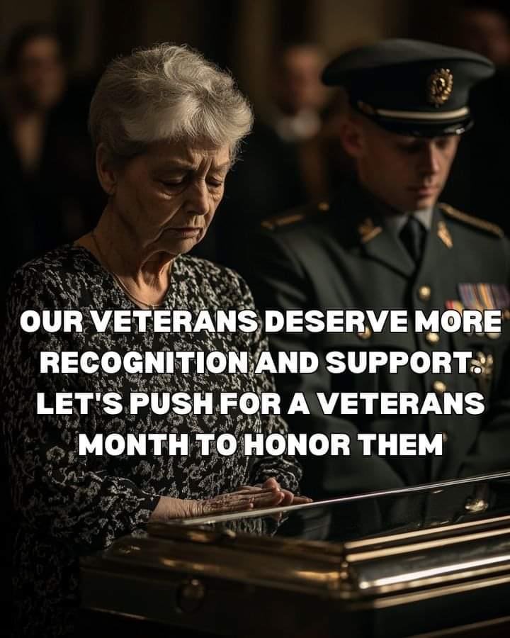 OUR VETERANS DESERVE MORE RECOGNITION AND SUPPORT. LET’S PUSH FOR A VETERANS MONTH TO HONOR THEM
