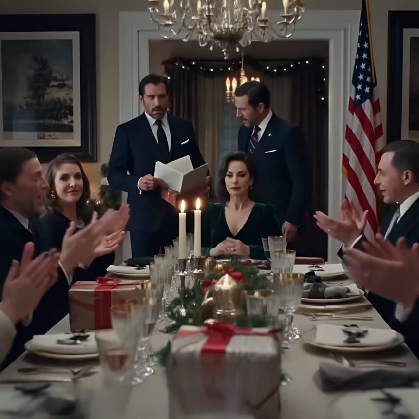 My husband’s best friend bet him I’d cry when they served me divorce papers at Christmas dinner—“women are so predictable,” he laughed. I signed immediately, without a single tear, then calmly handed them a wrapped present. When they opened it, their smiles froze, their faces drained of color, and the room fell into stunned silence as they realized what I had really just given them.