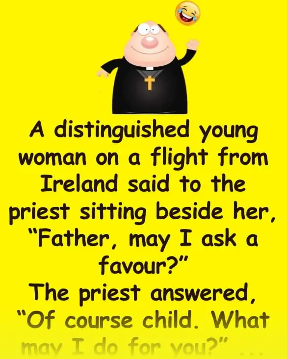 A distinguished young woman on a flight from Ireland said to the priest sitting beside her,