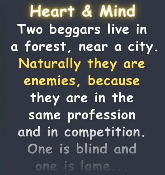 And those two beggars had been enemies for years. But one day the forest caught fire.