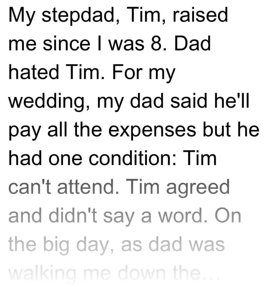 Sadly, for Lynn, she had to decide whether her dad or stepdad would attend the big day.