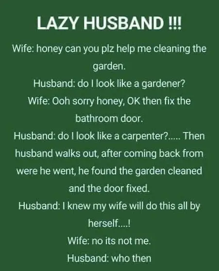 Wife: honey can you plz help me cleaning the garden.