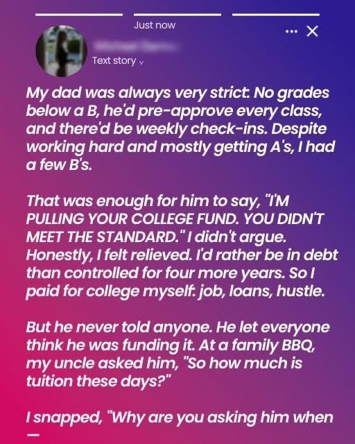 So I paid for college myself—job, loans, hustle. But he never told anyone. He let everyone think he was funding it.