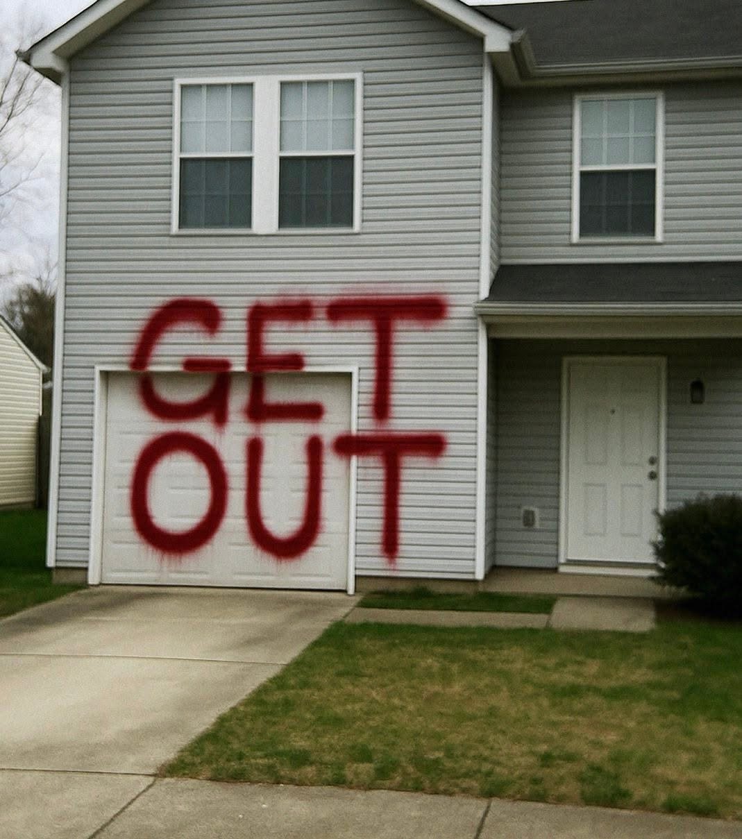 My breath caught. Spray-painted across the front of our house in ugly black letters: GET OUT! “No,” I whispered, my stomach twisting.