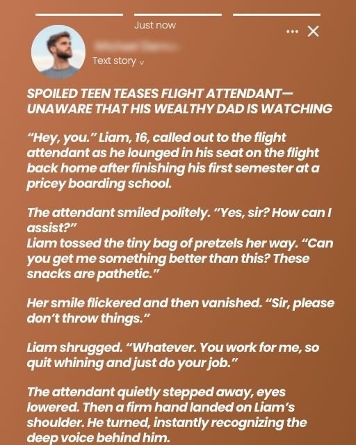 What are you doing here?” Liam blurted out, a mix of surprise and something else—unease. Richard’s gaze shifted from Liam to the flight attendant, who was now quietly restocking the beverage cart a few feet away. “I’m here because I heard you were on this flight,” Richard said softly but with an edge.